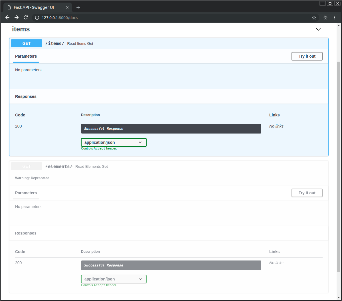 @app.get("/elements/", tags=["items"], deprecated=True)